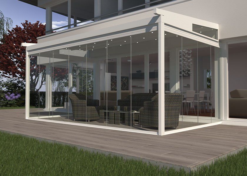 Le nostre soluzioni si adattano a porticati, verande e dehor, regalando armonia, ottima visibilità e continuità tra interni ed esterni. La mancanza di profili verticali e l’estrema precisione consentono ai nostri prodotti di definire un nuovo concetto di design e comfort: contatta subito i nostri esperti .